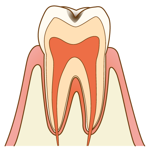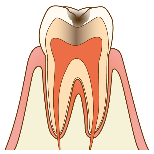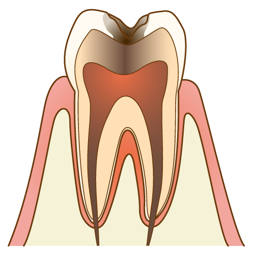 また、象牙質まで達した虫歯(C2)は、冷たいものがしみたり、咬むと痛かったりすることはありますが、ズキズキと痛むことはまだありません。